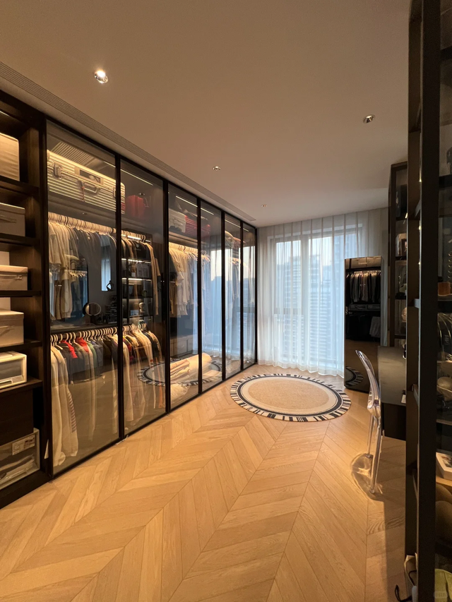 更重要的是,平开门可以做各种造型设计,比如隐形门设计能让衣柜和墙面融为一体,提升整体装修质感;或者选择玻璃门搭配灯光,高级感瞬间拉满。